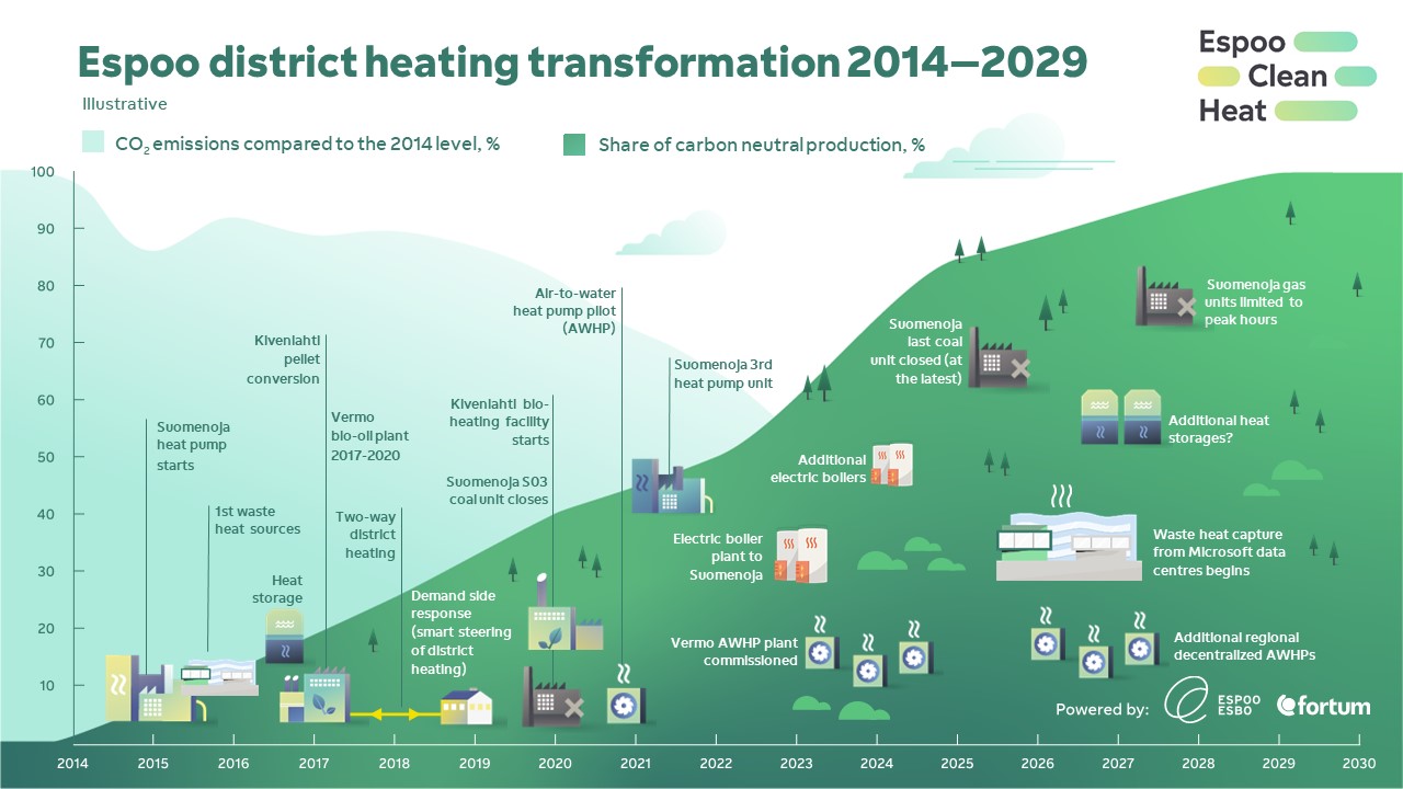 This project for carbon neutrality is called Espoo Clean Heat. It provides a flagship example of efficient decarbonization and transition to local self-sufficient heating on a large scale.